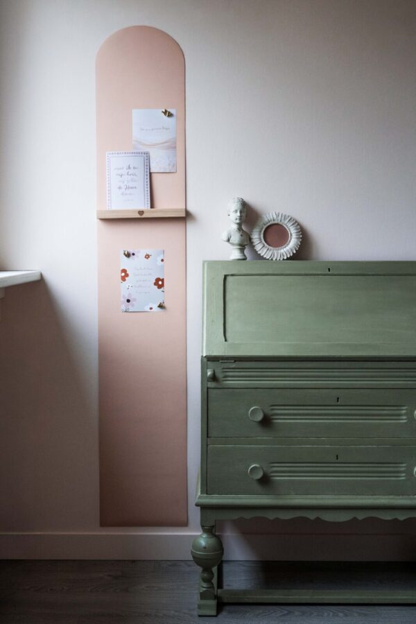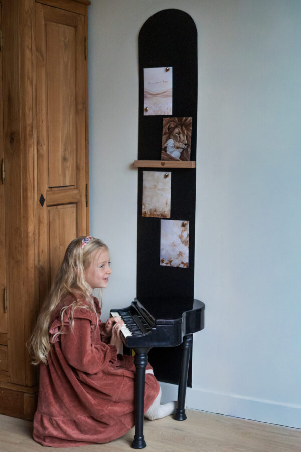 Hang aan de bovenkant jou notities of magnetische kaarthouder met je favoriete foto’s/kaartjes. En laat de kinderen aan de onderkant