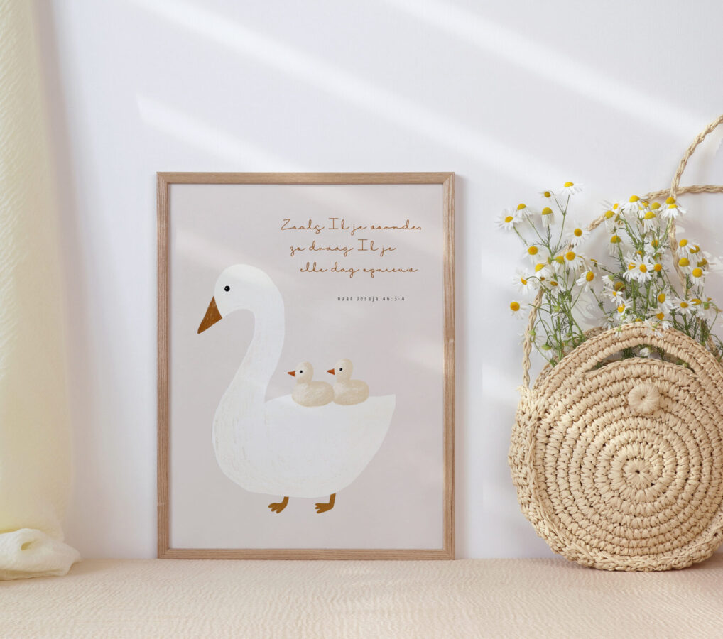 Wat een schattige poster met een prachtige tekst: ‘Zoals Ik je vormde, zo draag Ik je – elke dag opnieuw.’ Verkrijgbaar in 4 formaten: 21×30, 30×40, 40×50 en 50×70 cm. Mooi om cadeau te geven bij de geboorte of doop. Combineer de poster met een lijst uit de webshop en de poster komt heel mooi tot z’n recht met het anti- spiegelende plexiglas.