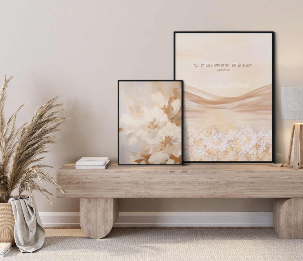 Deze poster in neutrale maar toch sprekende kleuren kun je heel goed combineren met verschillende posters. Mooi om hiermee je collage aan te vullen. Bestel deze poster in verschillende afmetingen. Bestel er een mooie lijst van ons bij en de poster komt echt tot z’n recht. Dit omdat deze anti-spiegelend plexiglas hebben.
